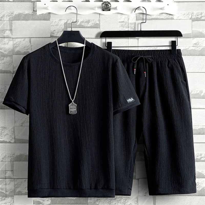Hop into spring with smooth feel of ice silk on your skin. This set ensures unparalleled breathability, keeping you cool and fresh all day long. The elastic waistband gives a perfect fit allowing you to feel your best. Bring what you need with a back pocket, and two side pockets.